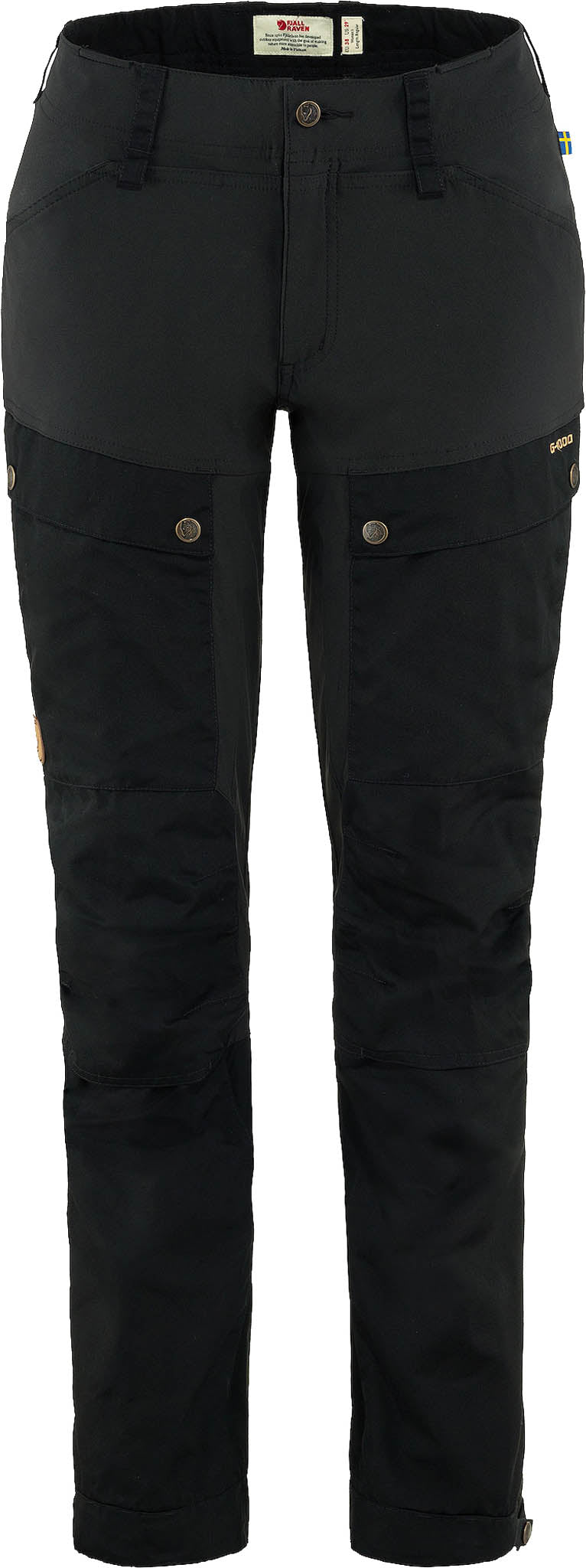 Made in stretch fabric and G-1000, now updated for even better performance, fit, and durability. Leg endings have a new design that is easier to adjust and repair. Just as before, the trousers have classic, large pockets, generous ventilation zippers now with mesh backing and openings for knee pads (an accessory). A well-fitting, durable classic for maximum freedom of movement in the mountains.