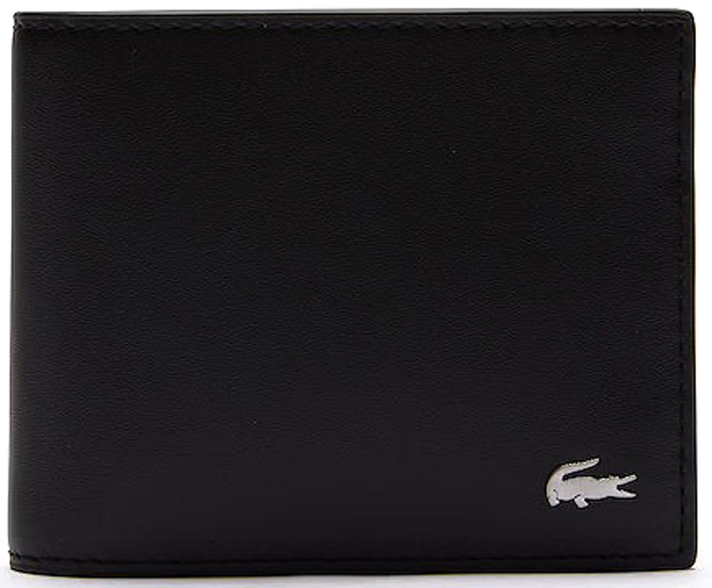Suave elegance for this smooth all-leather wallet adorned with an understated brushed metal crocodile. Timeless and impeccable.