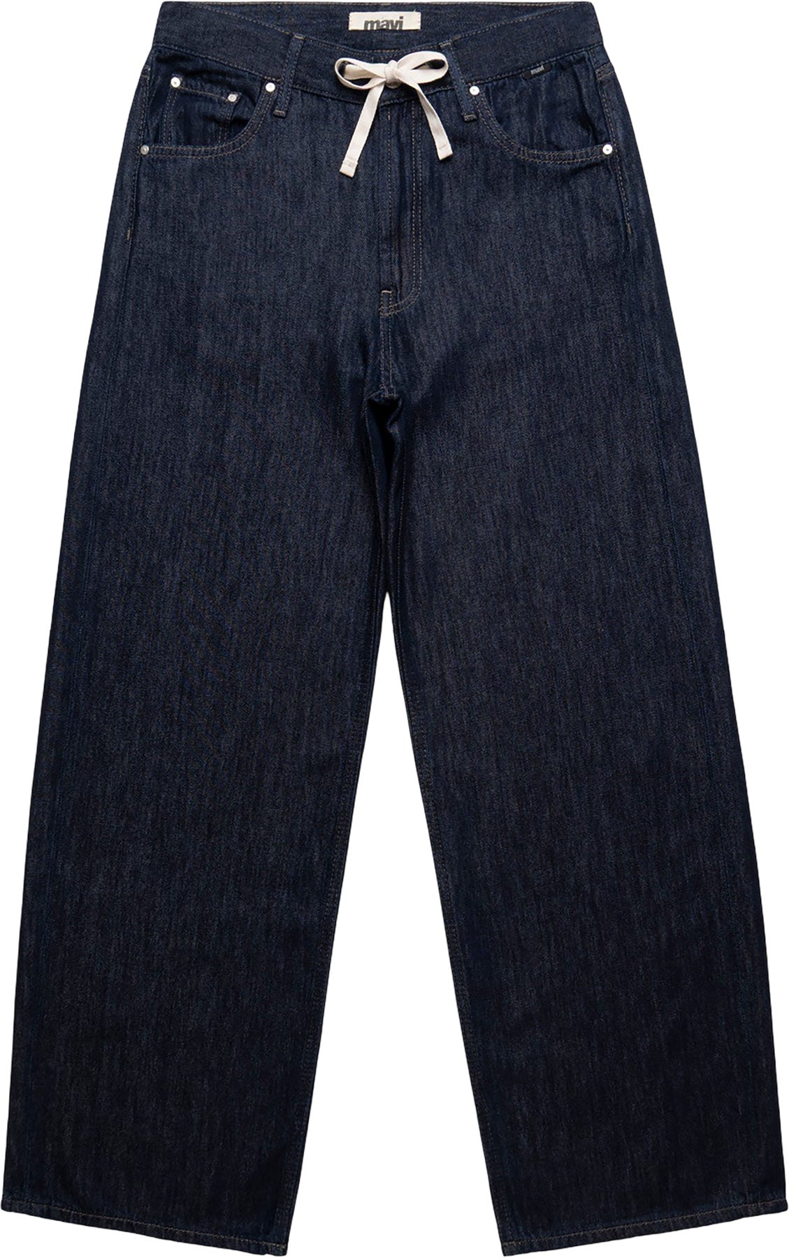 Nella features a loose wide leg and high rise, finished with an adjustable drawstring. Blending comfort with a bold look, it offers relaxed movement through the leg while keeping a defined waist. This pair comes in a versatile light blue wash with subtle whiskering.
