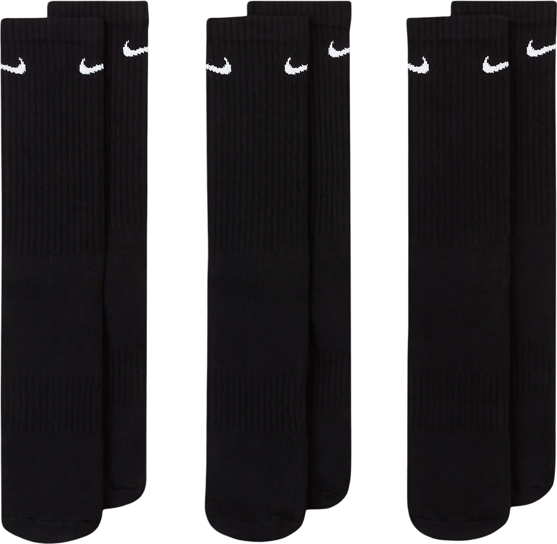 Power through your workout with the Nike Everyday Cushioned Socks. Sweat-wicking technology helps to keep you dry and cool, while the thick terry sole gives you comfort for those intense lifts and extra miles. The banded arch feels snug and supportive around your foot. 3-pair packaging means you always have a backup plan.