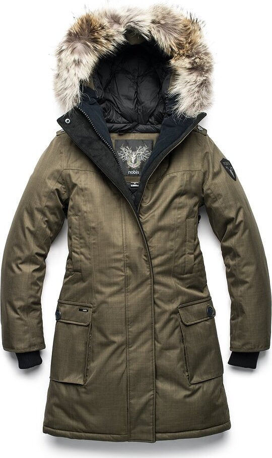 The Abby insulated winter jacket from Nobis is one of the most coveted jacket, whether it is for its elegance, its warmth or its comfort, it'll keep you warm and will satisfy all your needs this winter. You'll be protected from the storms with a fur detailed hood, windproof, waterproof finish and a knee length cut.